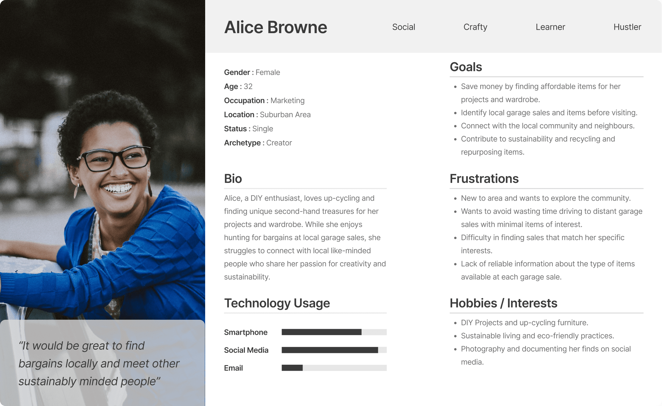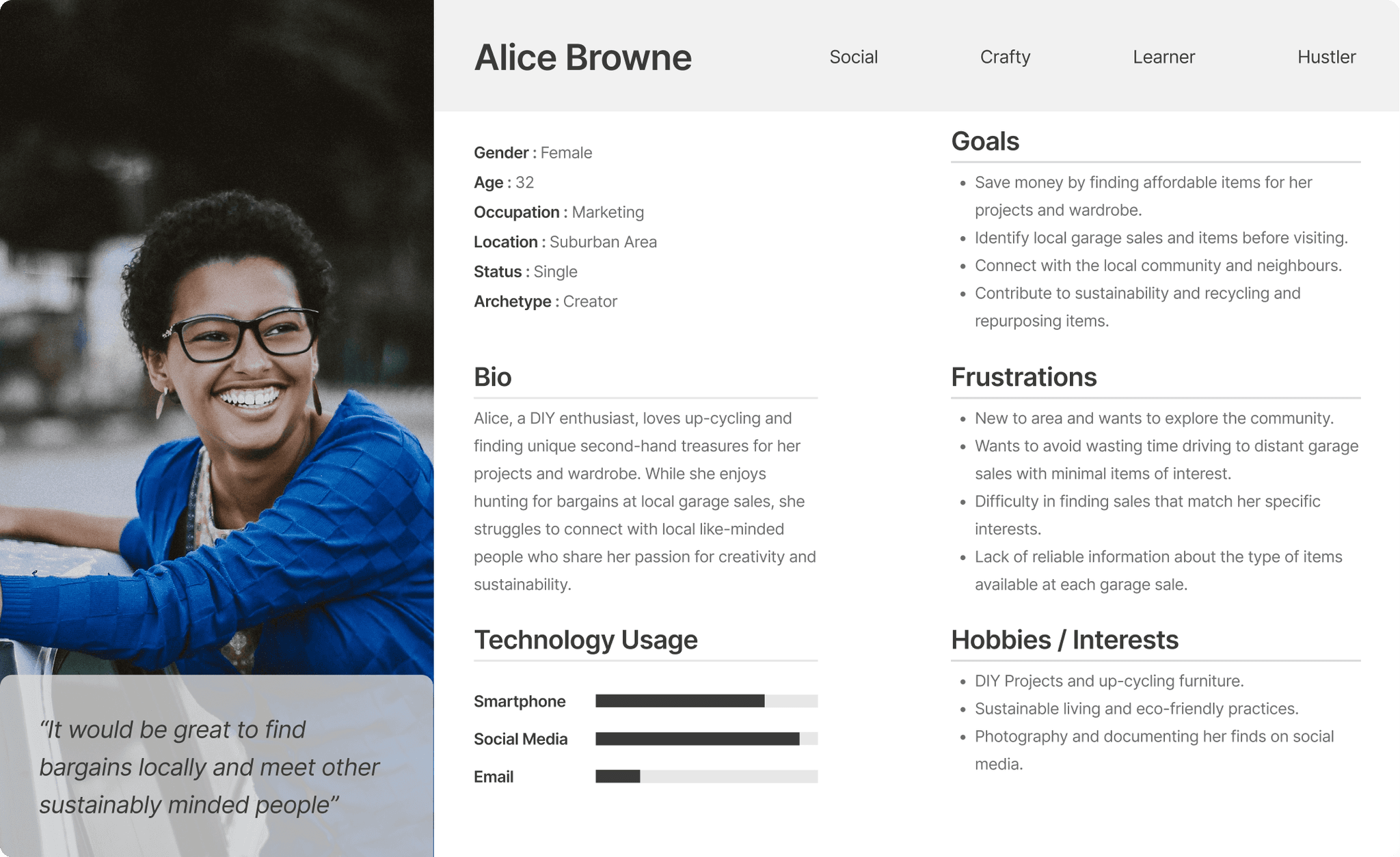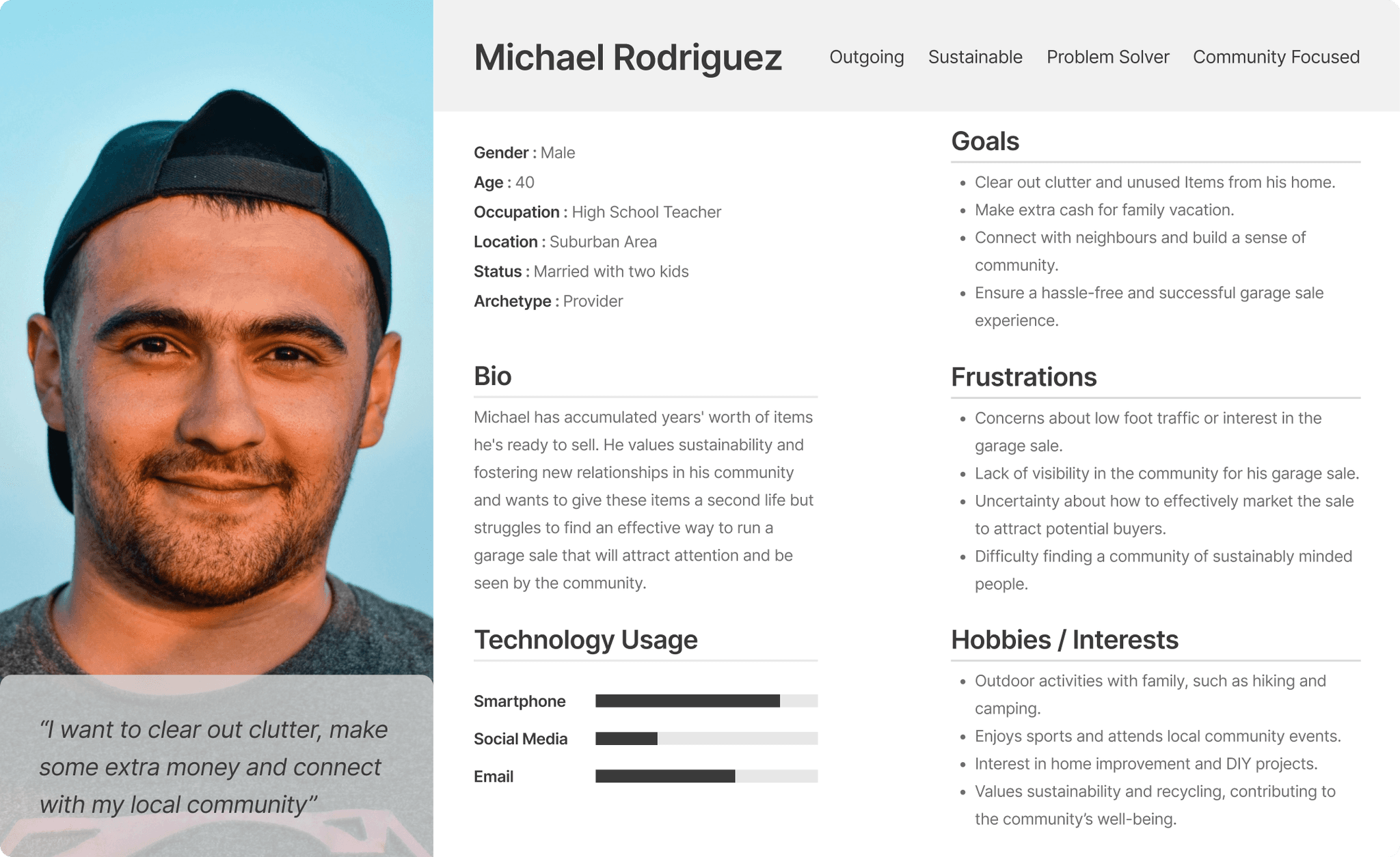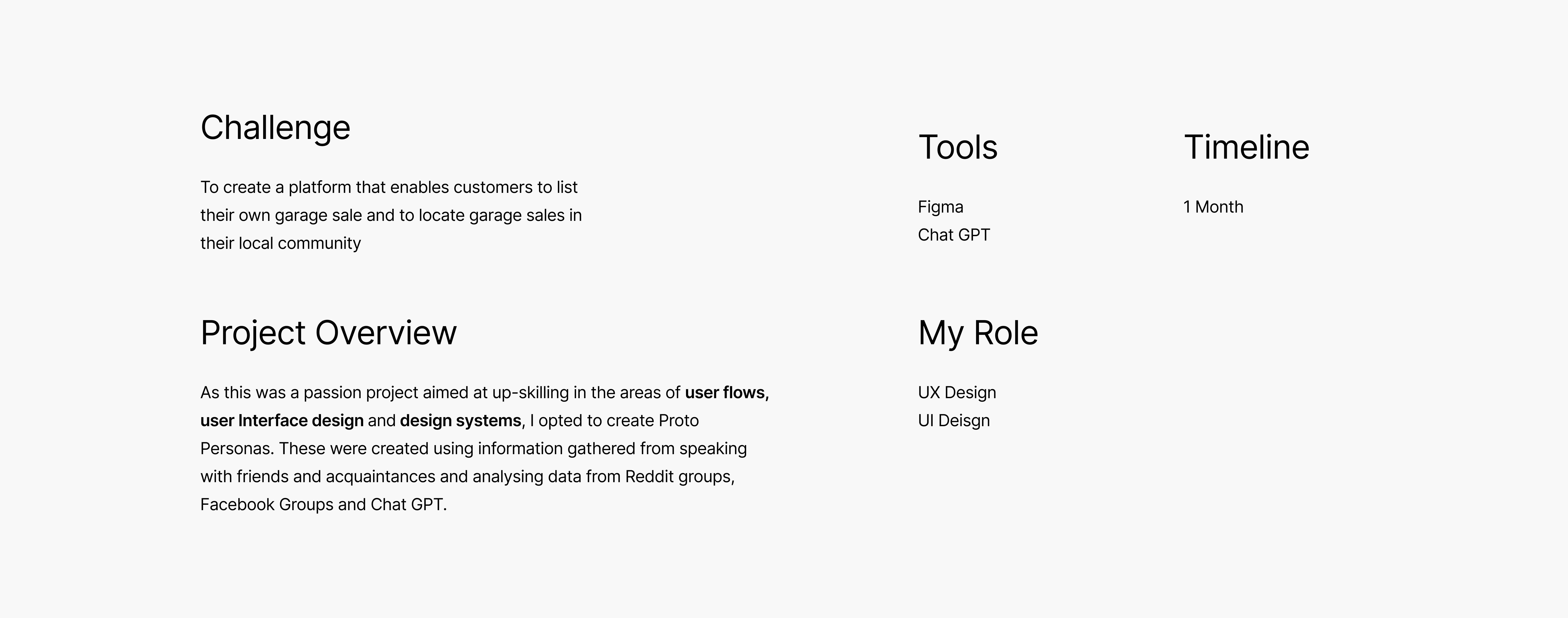 After gathering data from in person conversation, Reddit Groups, Facebook Groups and Chat GPT, I created Proto Personas for both the lister and finder of garage sales.